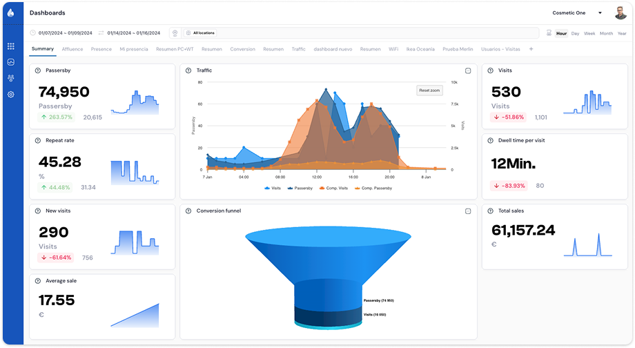 Measure outdoor and indoor traffic, track real-time occupancy, and calculate conversion all in one powerful platform.
