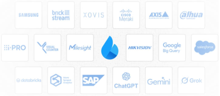 Flame integrates seamlessly with leading CCTV and people-counting systems, and connects effortlessly to your modern data ecosystem including cloud platforms, data lakes, and enterprise analytics environments.