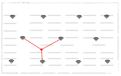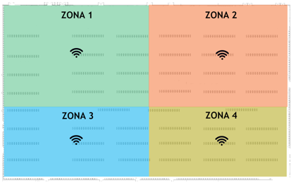 Utilizamos puntos de acceso dedicados en cada zona que queramos medir y asignamos las balizas emitidas por los teléfonos en función de la proximidad a las mismas. Funciona bien en establecimientos grandes y especialmente en: