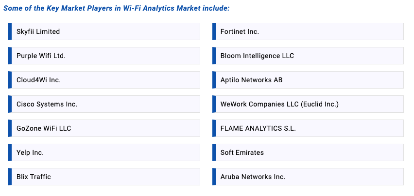 Their analysts recently completed a research study titled “Wi-Fi Analytics Market- Global Industry Analysis and Growth Forecast to 2030”. The research includes all the latest market information, including impact analysis of COVID-19 on this Market.