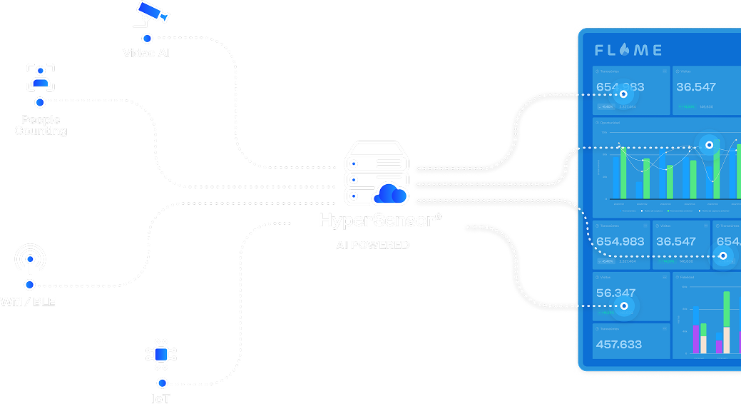 Flame connects with your existing hardware and data sources — CCTV, people counters, WiFi or POS — ensuring full compatibility and seamless integration.