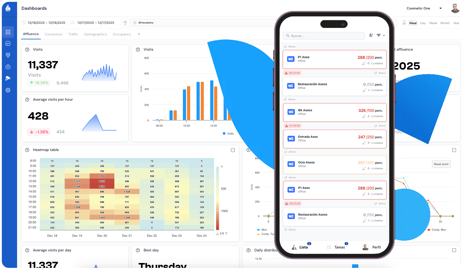 Flame Restroom Management combines people-counting sensors and a mobile app to automate cleaning cycles based on actual usage. Receive alerts, record interventions, and analyze patterns over time — improving efficiency, cleanliness and visitor satisfaction across all your venues.