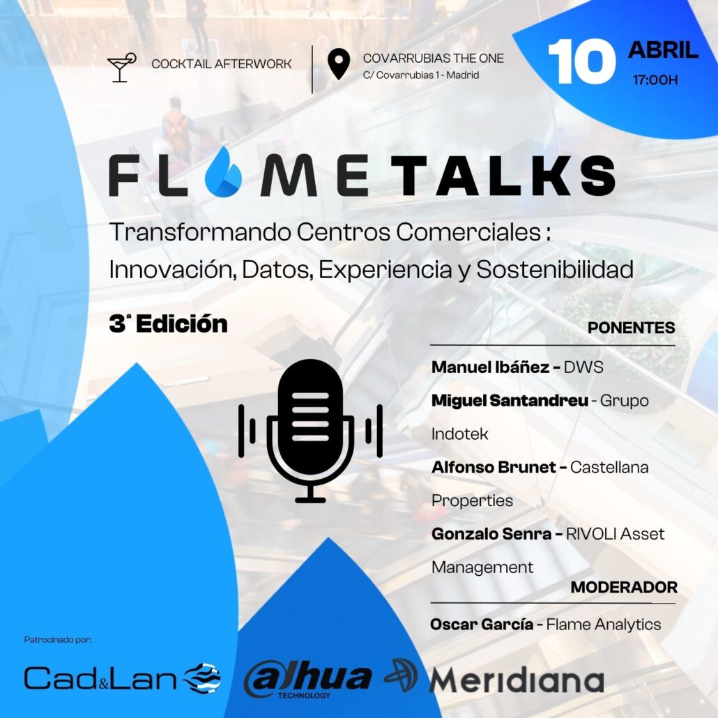El 10 de abril a las 5 de la tarde tendrá lugar en Madrid la tercera edición de un encuentro de visionarios que no te puedes perder. Flame Talks se ha convertido en una cita ineludible para los profesionales del sector de los centros comerciales, gracias al éxito alcanzado en ediciones anteriores. ¡Únete a nosotros para descubrir las claves del