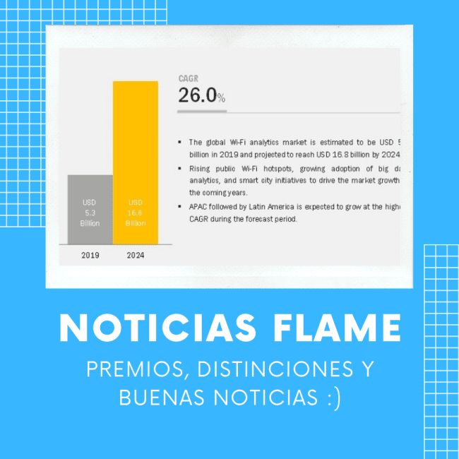 Según un reciente estudio publicado por www.marketsandmarkets.com, Flame es una solución clave en el mercado del Wi-Fi Analytics. Nuestro nombre aparece junto al de Cisco, Aruba o Cloud4Wi como uno de los principales proveedores que ofrecen soluciones de analítica Wi-Fi a nivel mundial.