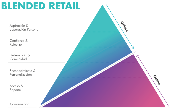 Las tiendas físicas van a destacar por: Relación, Humanidad, Touch & Feel, Entretenimiento, Selección y Gratificación inmediata. Por su parte, el Ecommerce destaca por: Pain Point, Tracking End to End, Amplio Surtido, Frictionless, Comunidad y Atención 24/7.
